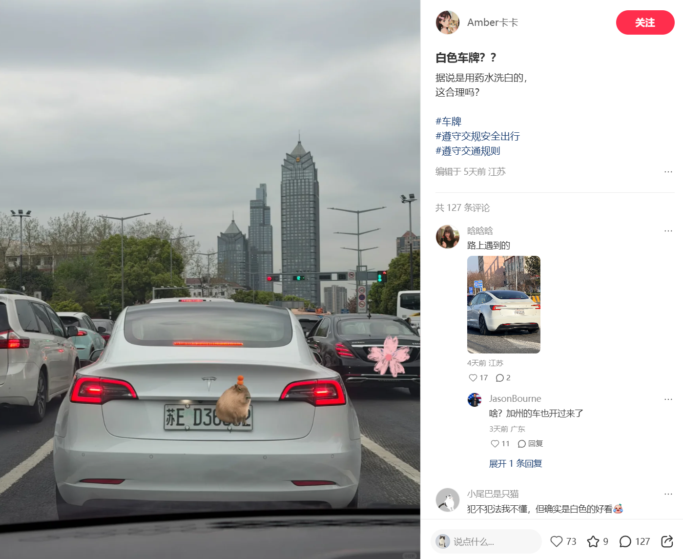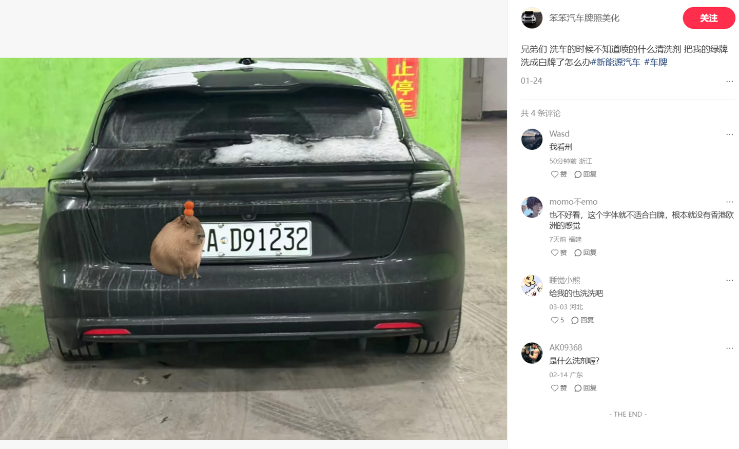 未经允许不得转载:紫竹林-程序员中文网 » 新能源车牌绿色变白色,网传“做旧褪色”教程引热议