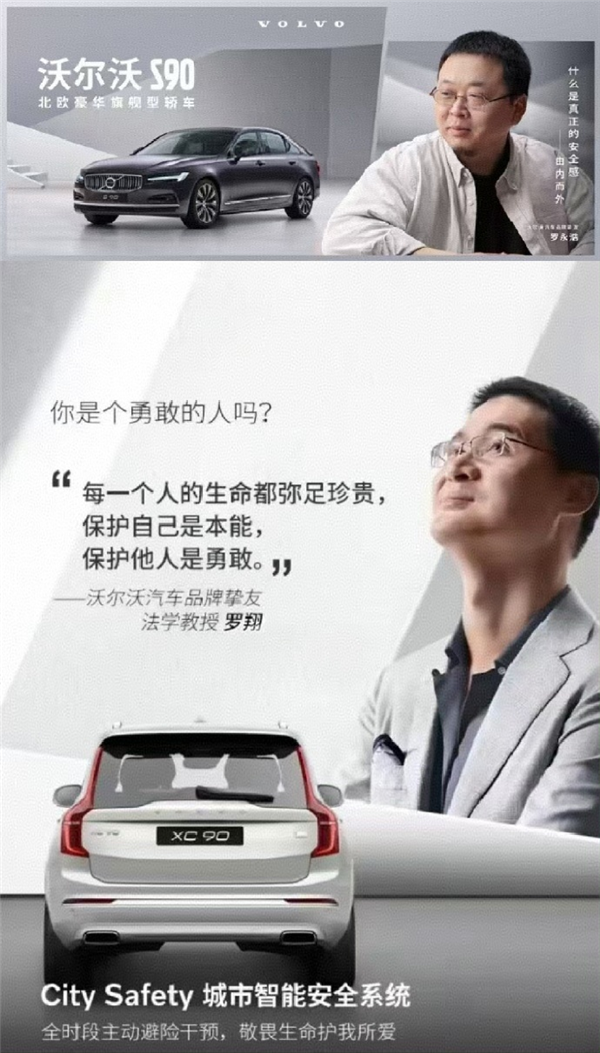 值得注意的是,此前沃尔沃还曾邀请罗翔、罗永浩等为其广告片,官方均定位为“品牌挚友”。