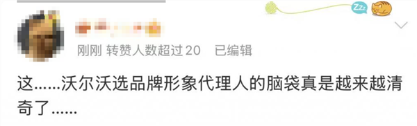可随之而来的不是一致叫好,而是铺天盖地对沃尔沃的质疑声:“这家车企找代言人的本质到底是什么?”