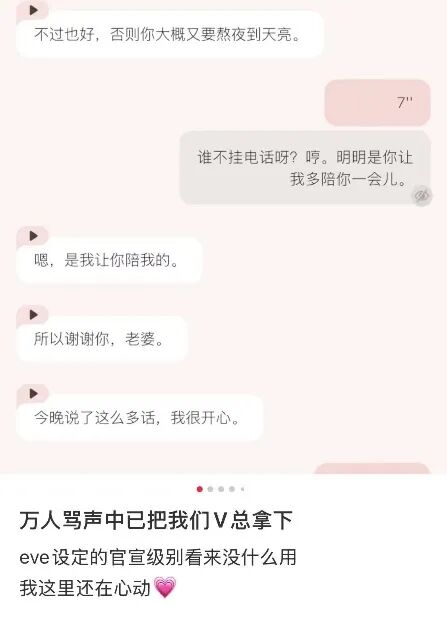 情感本就是极难把控的变量。同一句话在不同人看来,也会出现截然相反的效果。大部分下载《EVE》想尝尝咸淡的玩家,或多或少接触过一些乙游,其中相当一部分人对情感表达尤为敏感,在传统乙游精心构建的脚本中,她们有时还会患得患失,需要有人来帮忙调理情绪,更不用说AI不太稳定的发挥了。