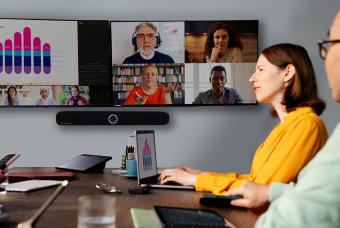 针对大型会议、高管研讨、远程培训等复杂场景,Pro版本提供更强大的连接能力与拓展性,搭配森海塞尔TC Bar M等专业音频设备,可构建沉浸式高端会议环境,实现音画同步、清晰流畅的混合协作体验。