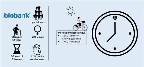 对于一些高风险人群,运动时间点的选择就更需谨慎。一项纳入 86657 名被调查者的研究发现,无论总身体活动量如何,早晨进行体力活动发生心血管疾病(中风、冠心病、缺血性中风)的风险更低,这凸显了运动时间点在预防心血管疾病中的潜在重要性。