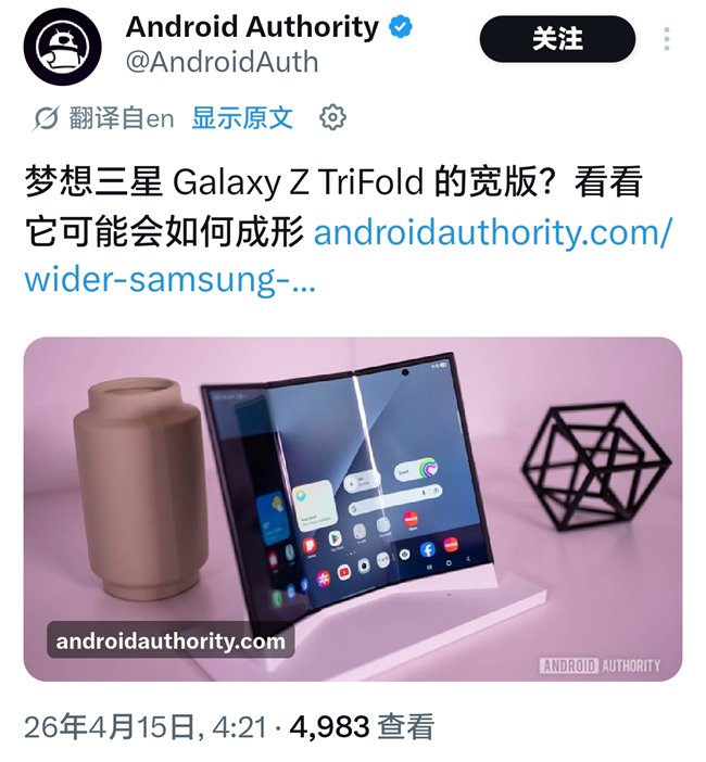 【iMobile爱科技资讯】4月15日,三星第二代三折叠手机Galaxy Z TriFold Wide的相关专利被曝光,这款新机或许能打破大家对折叠屏的固有认知。