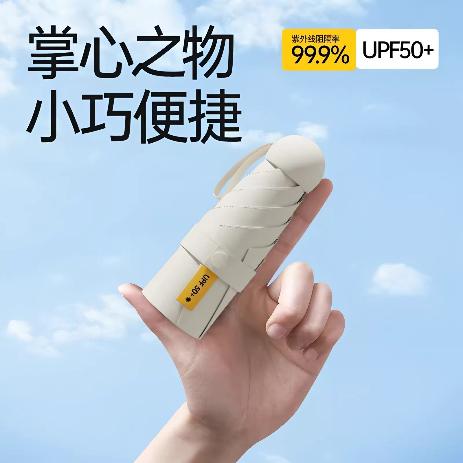 三色可选,迷你胶囊伞,黑胶防晒防紫外线,晴雨两用。