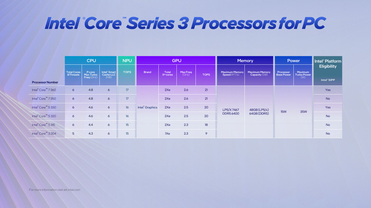 英特尔发布酷睿 300 “Wildcat Lake” 处理器,2P + 4LP-E + 2Xe + 17TOPS