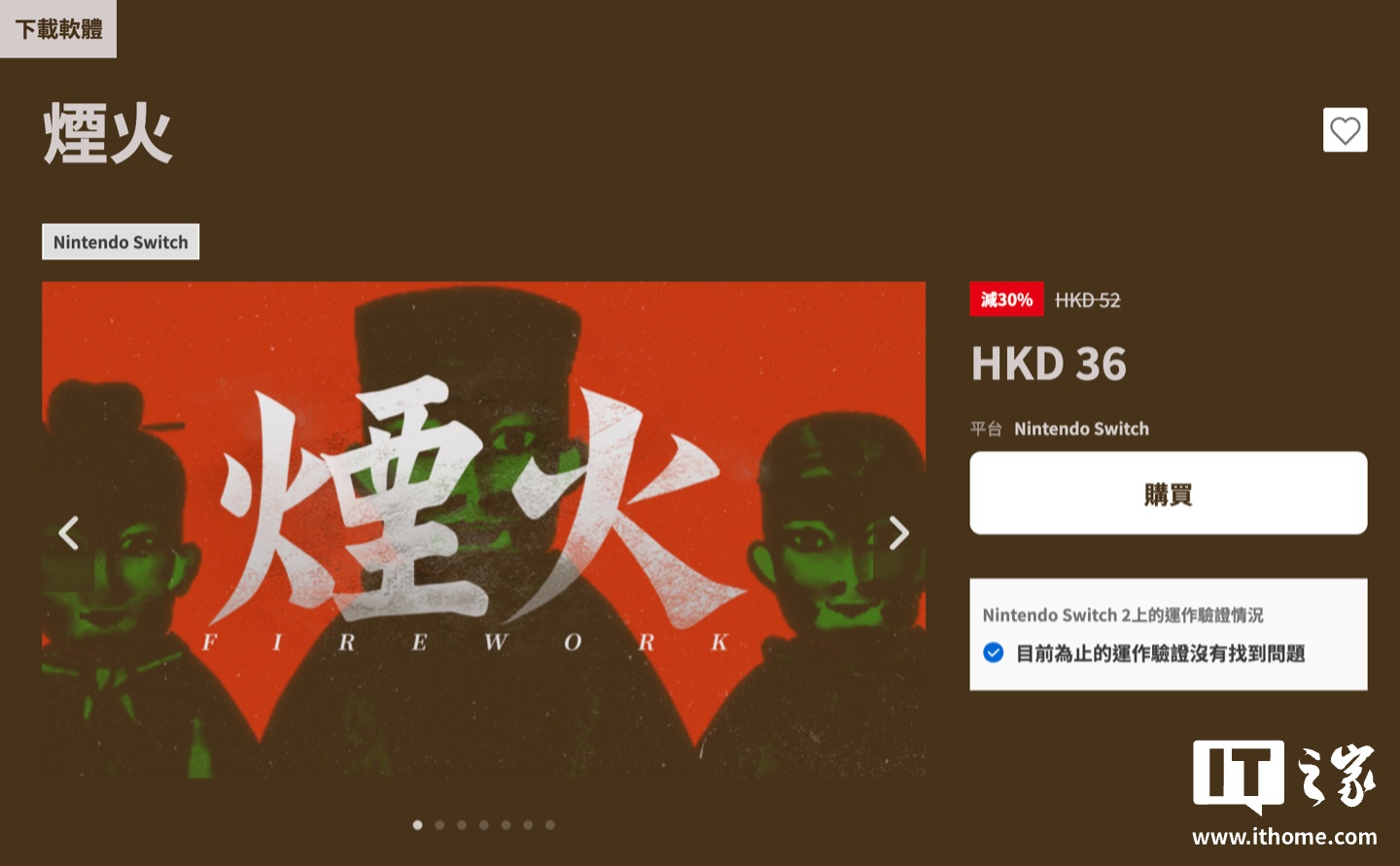 IT之家 4 月 16 日消息,由拾英工作室开发、Gamirror Games 发行的悬疑剧情游戏《烟火》现已登陆 Switch 平台,eShop 港服售价为 52 港币(IT之家注:现汇率约合 45.7 元人民币),首发两周内购买可享受 7 折优惠,到手价 36.4 港币(现汇率约合 32 元人民币),IT之家附游戏 eShop 港服地址。