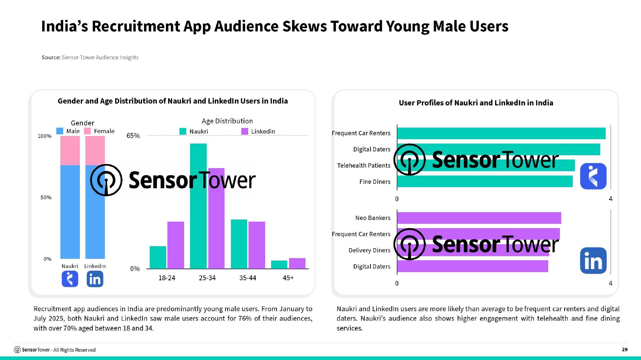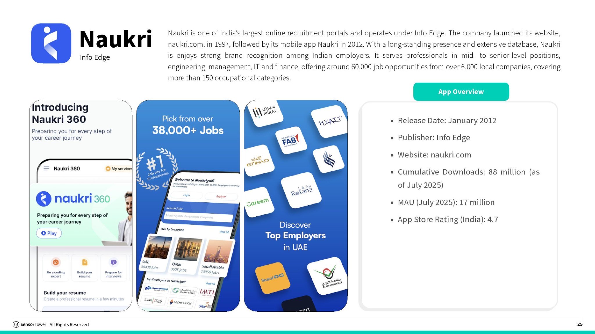 2025上半年LinkedIn与Indeed领跑全球招聘应用下载及MAU排行2025年上半年,全球招聘应用市场格局稳固。LinkedIn与Indeed凭借庞大的下载量与活跃用户基数持续主导市场,构成了全球招聘行业的核心流量生态。