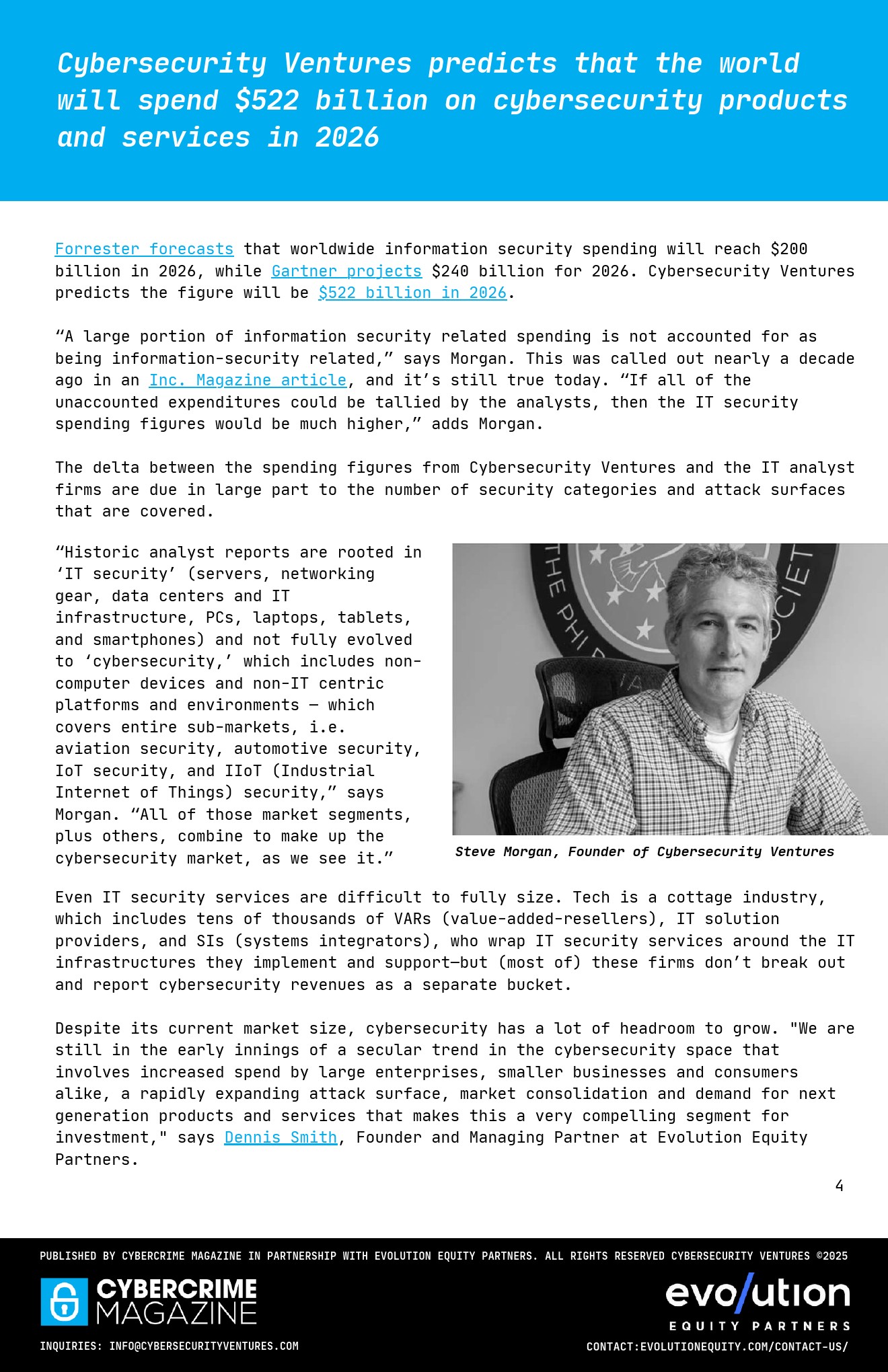 不同机构对支出规模存在显著分歧。IDC预计2028年安全支出为3770亿美元,而Cybersecurity Ventures预测2026年达5220亿美元,远高于Forrester的2000亿美元与Gartner的2400亿美元。 差异本质源于统计口径,后者纳入更多非IT场景,如汽车、航空与工业安全,揭示“泛安全化”趋势正在重塑行业规模认知。