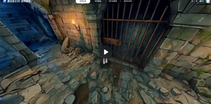混元 3D 世界模型 2.0 的风格化控制表现也很好,从官网已有的世界案例能看到,无论是温馨的绘本风还是写实的游戏风,它对语义的解析非常精准;墙壁的纹理、地牢的阴影和光感都极具沉浸感。