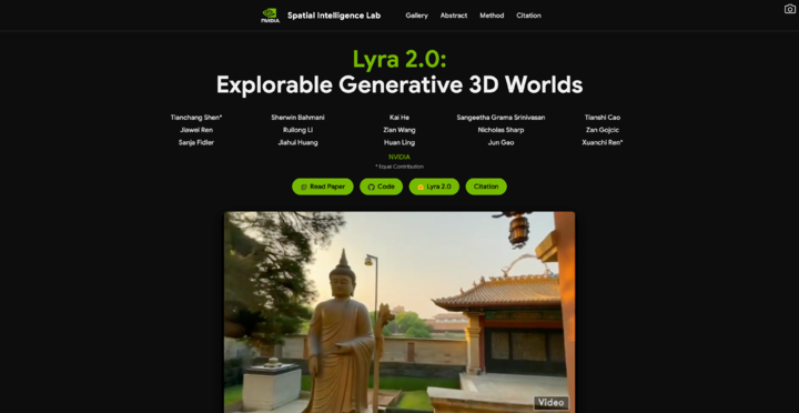 最容易忽略的还有英伟达 Lyra 2.0,没有发布会和新闻稿,旗下的空间智能实验室直接甩出一篇论文,「可探索的生成式 3D 世界。」