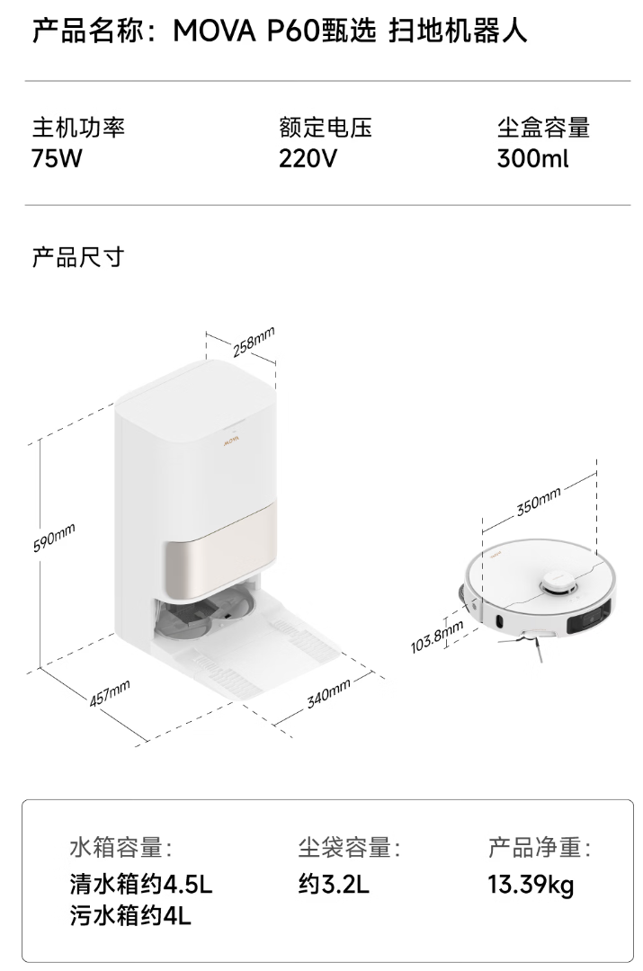 MOVA P60 于 2025 年 2 月上市,标准版官方定价 3999 元,上下水版 4599 元