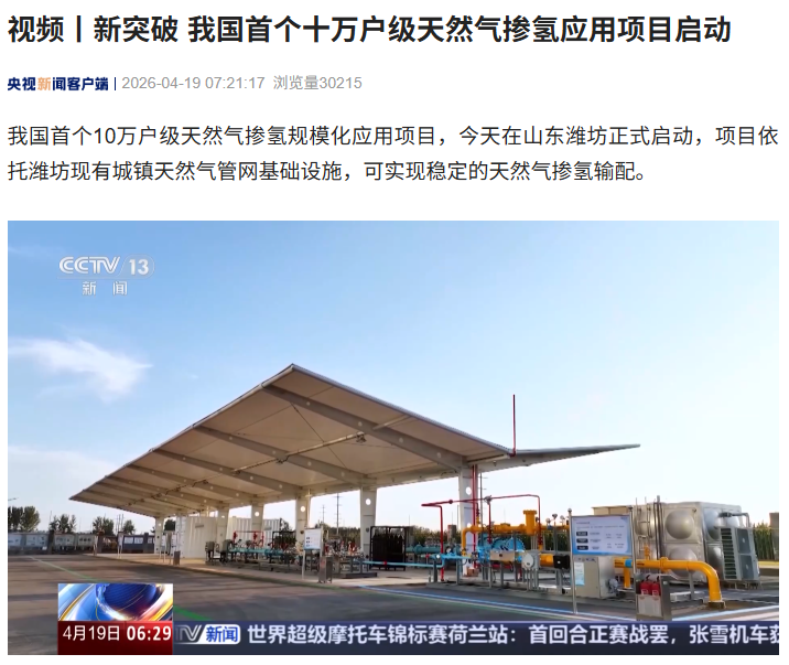 IT之家 4 月 19 日消息,据央视新闻报道,我国首个 10 万户级天然气掺氢规模化应用项目,今天在山东潍坊正式启动,项目依托潍坊现有城镇天然气管网基础设施,可实现稳定的天然气掺氢输配。