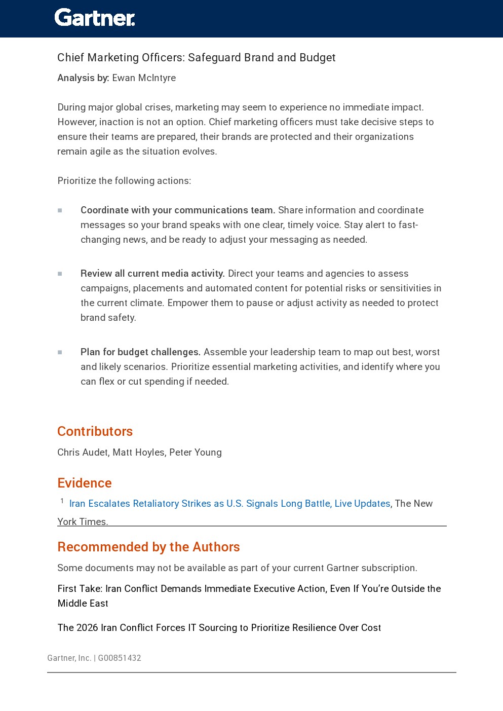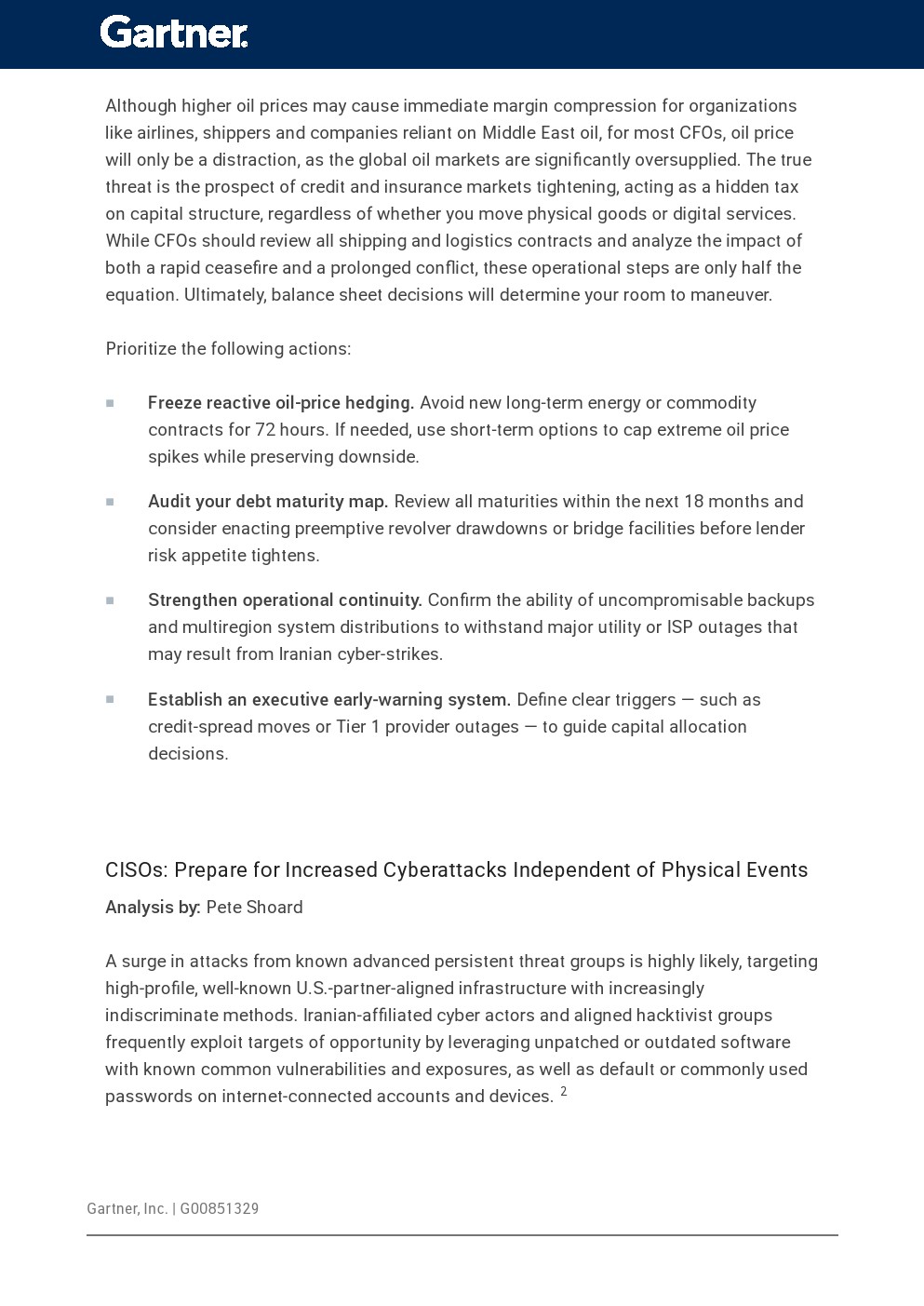 从企业治理与战略角度看,本轮冲突正在推动经营逻辑从成本效率转向韧性优先。跨职能协同机制成为关键,包括IT、采购、财务与法务的快速联动,以应对供应中断、网络攻击与资本波动等复合风险。同时,企业需建立清晰的预警指标体系,如信用利差变化、供应链延误及网络攻击频率,以提升决策前瞻性与执行速度。