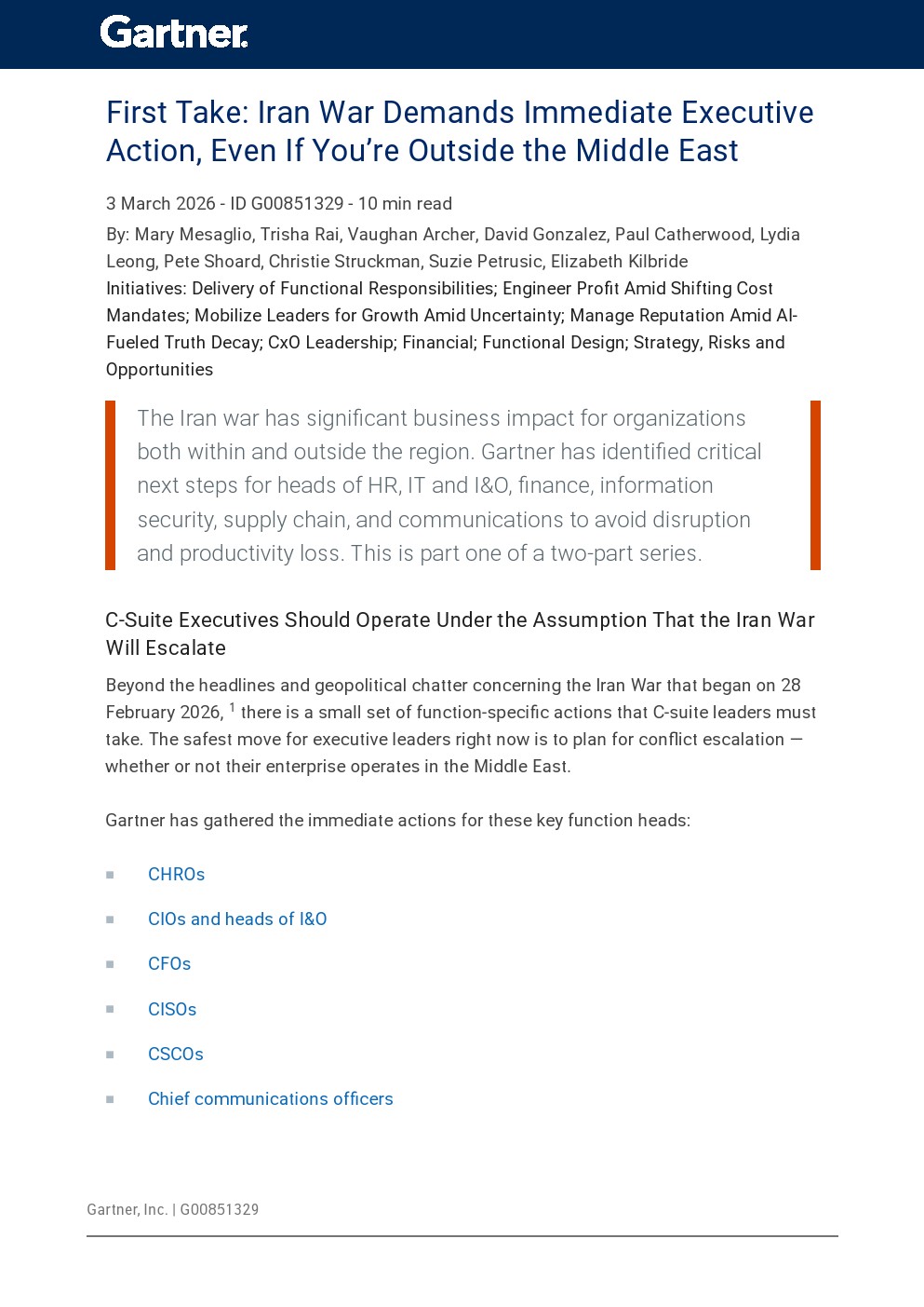 2026年2月爆发的伊朗战争,正在从区域性冲突演变为全球商业体系的压力测试。报告指出,冲突对企业的影响并不局限于地理范围,而是通过能源、物流、金融与网络安全等多重渠道迅速外溢。 企业面临的首要变化是运营不确定性显著上升,包括员工安全风险、跨境流动受限以及供应链中断,这些因素叠加使得生产效率与组织稳定性同步下降。