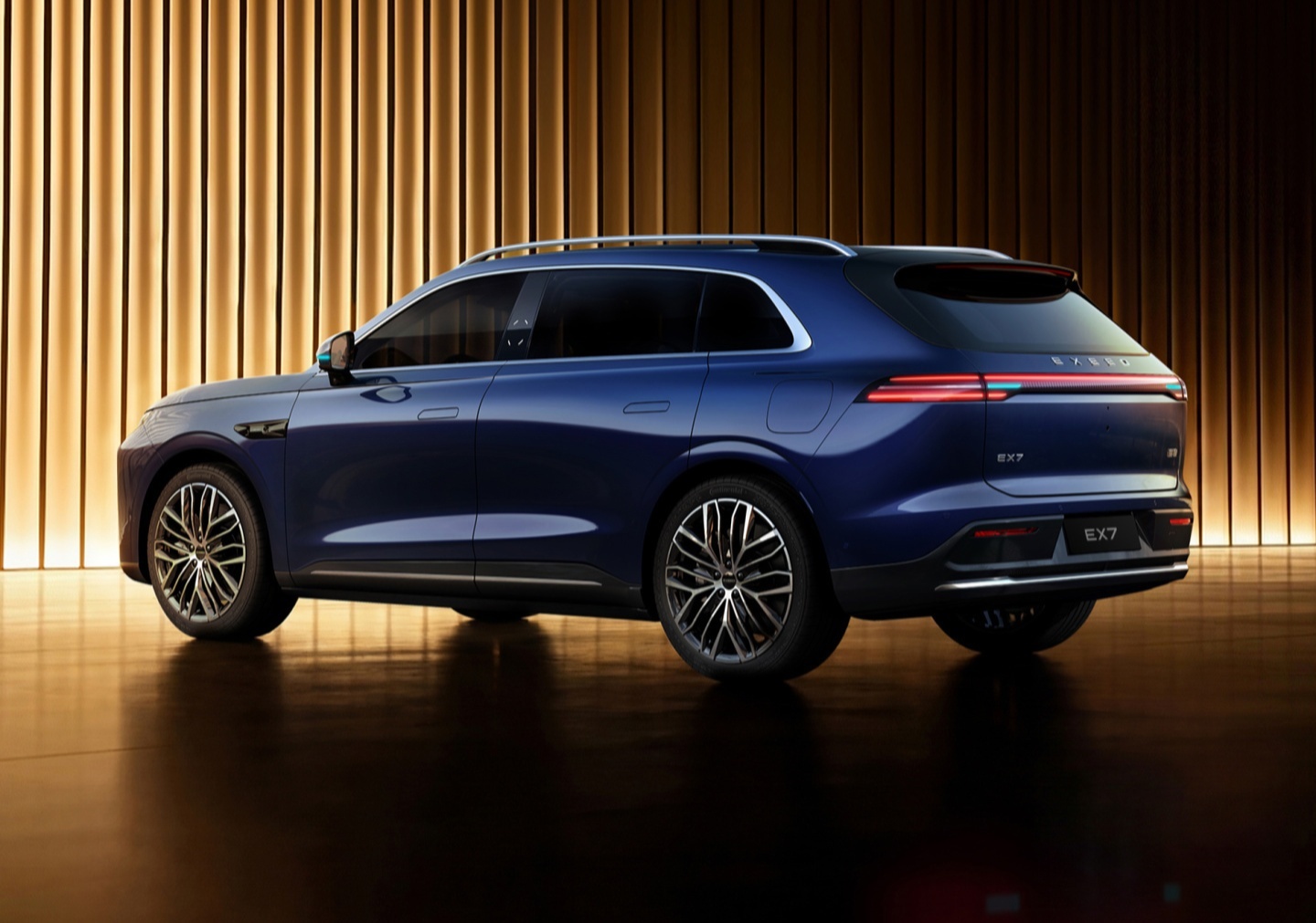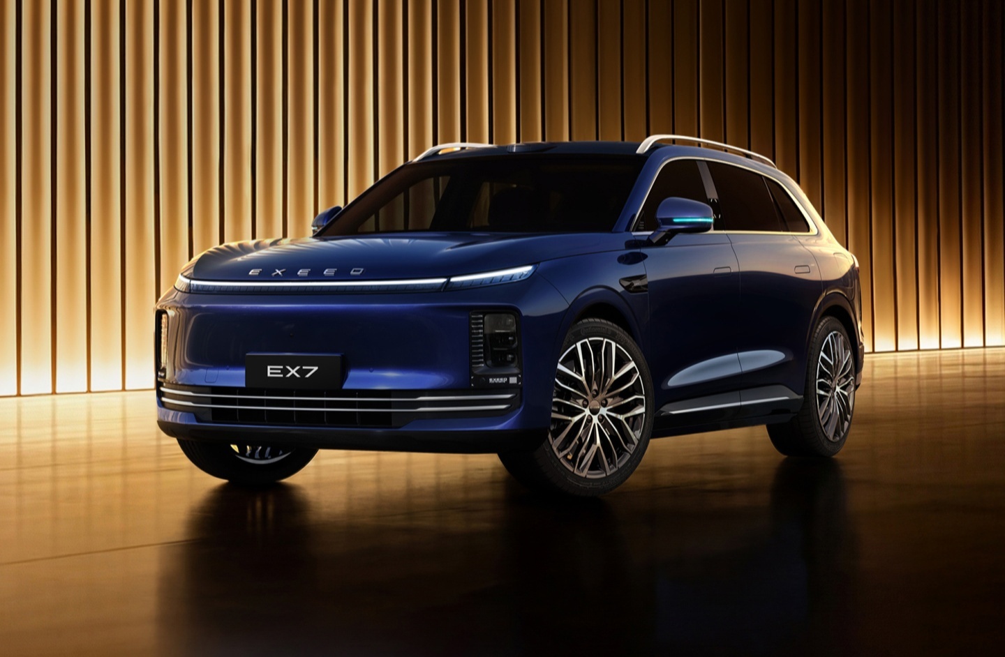 外观方面,星途 EX7 采用星途最新家族化设计语言,前脸配备分体式大灯组,上部为贯穿式 LED 灯带,下部融入贯穿式镀铬装饰,形成上下呼应的流畅视觉效果。车身侧面线条饱满,配备隐藏式门把手。车尾同样采用贯穿式灯带设计,并配备智驾小蓝灯。