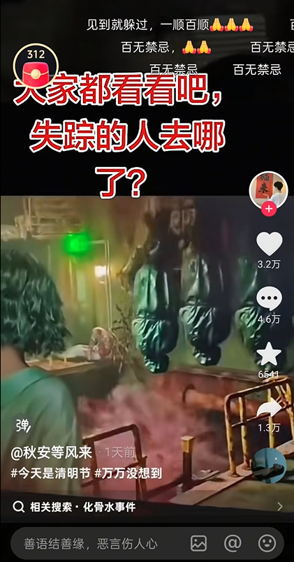 对比《生化危机9》和“六夫丁”的火热出圈,这事儿显得有些尴尬。不过在生化9刚出那阵,比起六夫丁先传到圈外的,其实是部分游戏画面被谣传为现实存在的“化骨池”,让短视频平台上的不少人信以为真。