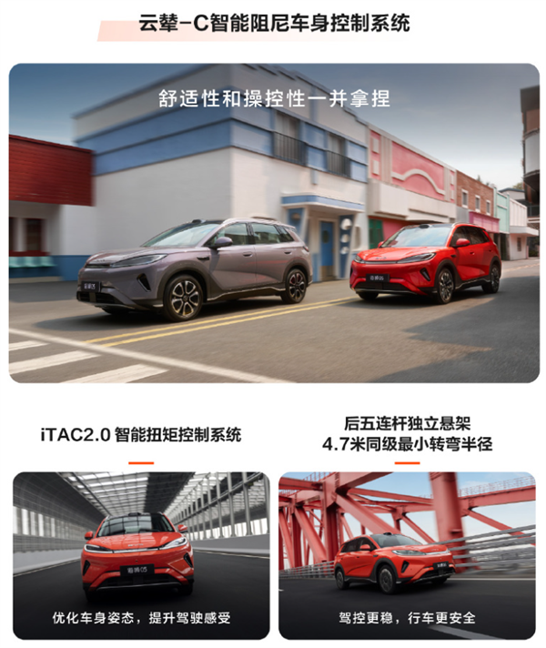 DM-i版本将纯电续航拉到305km的同时价格下探至10万以内,EV版本电机功率和续航同步大幅提升,配合激光雷达和云辇-C的下放,两款车在A级SUV市场的产品力已无明显短板。
