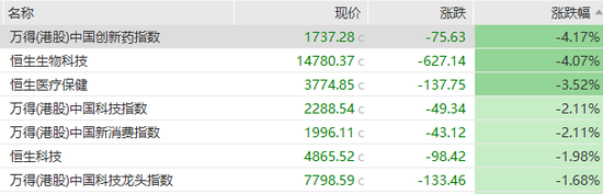 生物科技、创新药板块领跌,康方生物跌超11%,再鼎医药、亚盛医药跌超8%。