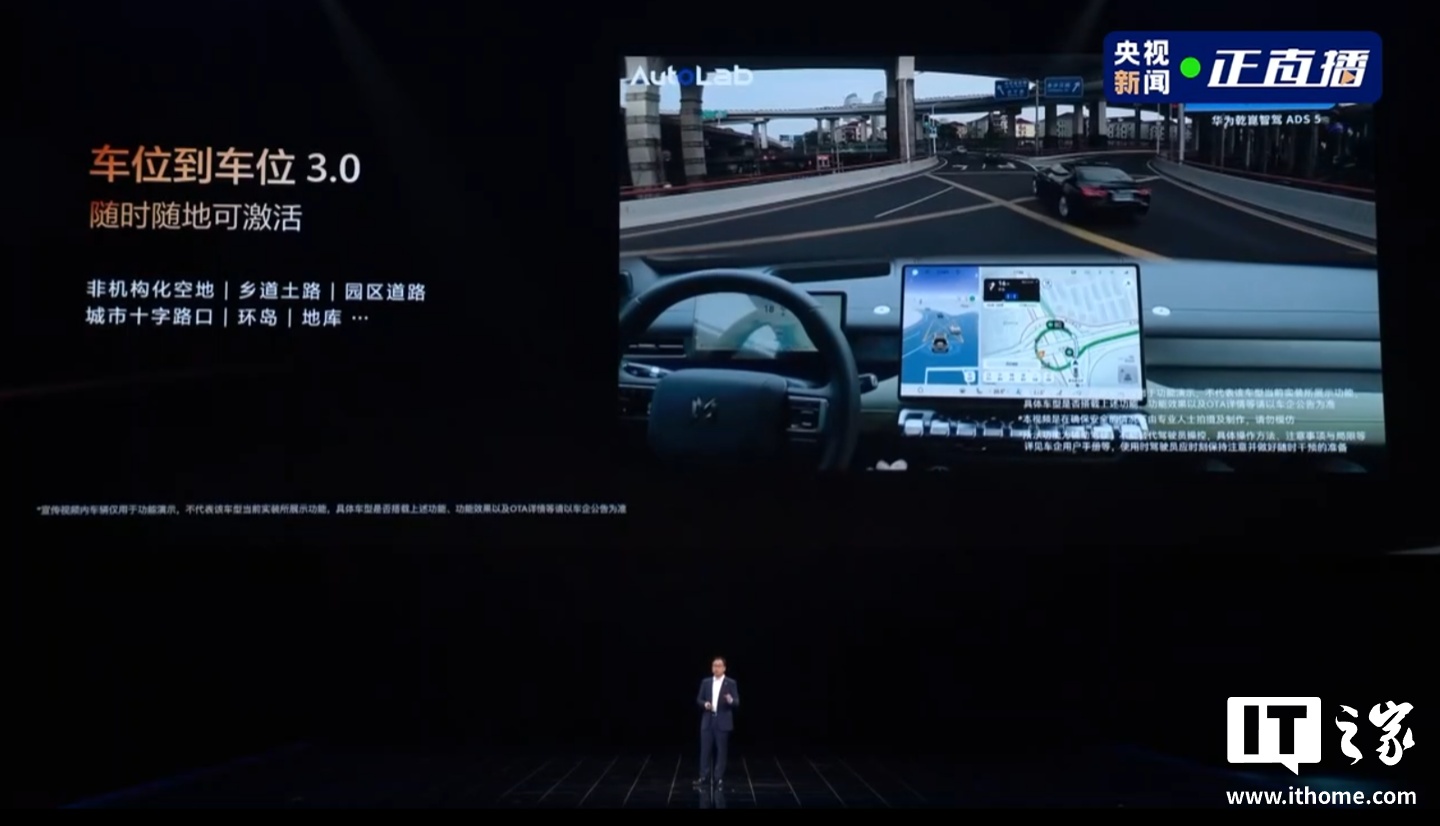 IT之家 4 月 23 日消息,华为乾崑技术大会正在进行中。华为智能汽车解决方案 BU CEO 靳玉志宣布,HUAWEI ADS 5 将支持车位到车位 3.0,宣称“随时随地可激活”。
