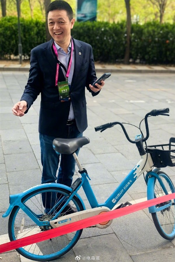 解锁车辆后,李斌从容骑上单车前往北京车展现场,疑似在途中有偶遇的网友主动上前与他合影留念,互动氛围轻松平和。