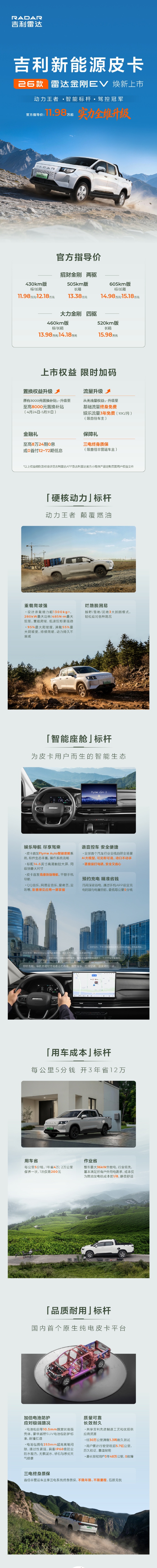 未经允许不得转载:紫竹林-程序员中文网 » 2026 款吉利雷达金刚 EV 皮卡上市,11.98 万元起