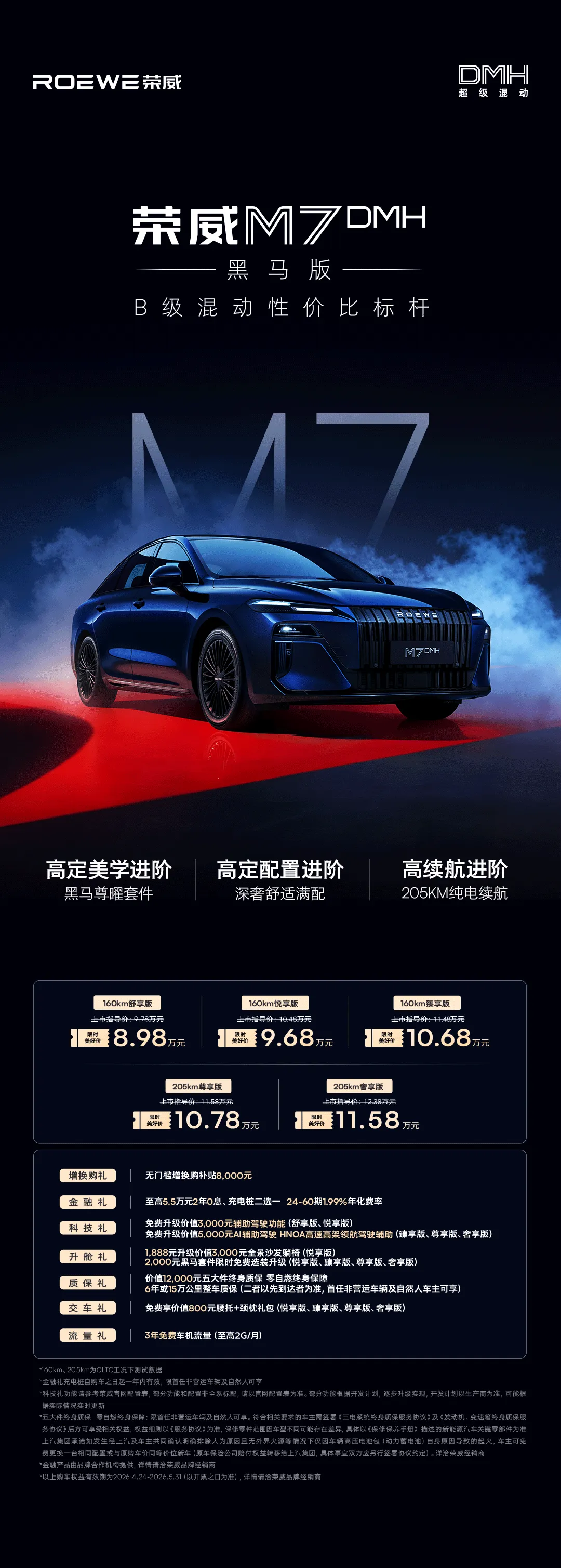 荣威 M7 黑马版上市,限时美好价 8.98 万元起