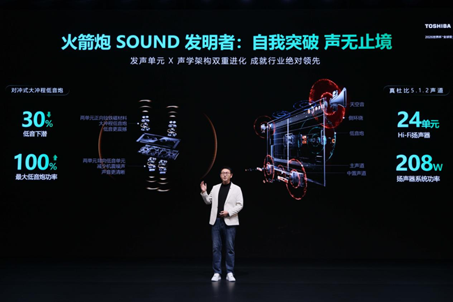 REGZA ZX还针对不同尺寸打造差异化声学方案:85/100吋机型通过剧院式360° 环抱出音,构建全方位立体声场;116吋机型更进一步,以可视化火箭炮声场技术,实现声学能量的直观呈现与极致释放。