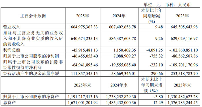 财务数据方面,2025 年明微电子实现营业收入 6.65 亿元,同比增长 9.48%;归属于上市公司股东的净利润为 – 0.46 亿元,同比下降 755.32%;扣除非经常性损益后的净利润为 – 0.65 亿元,同比下降 232.10%。经营活动产生的现金流量净额为 1.12 亿元,同比增长 290.66%。截至 2025 年末,公司总资产达 16.71 亿元,同比增长 12.49%;归属于上市公司股东的净资产为 11.91 亿元,同比下降 3.80%。