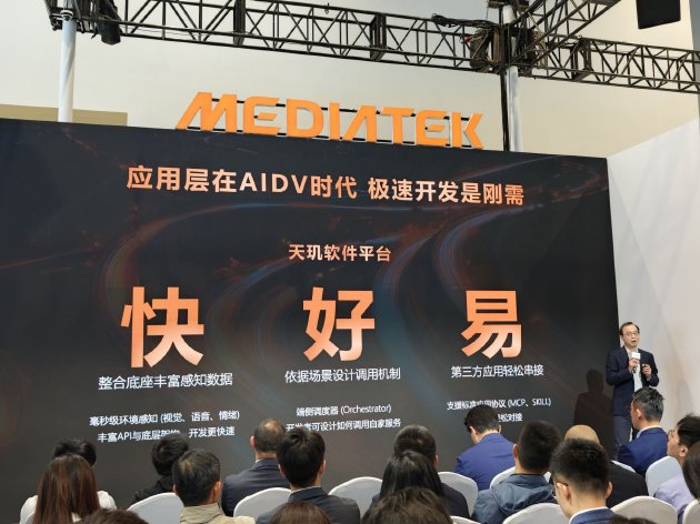 新浪数码讯 4月24日下午消息,第十九届北京国际汽车展览会期间,芯片厂商联发科(MediaTek)举办媒体沟通会,正式对外发布主动式智能体座舱解决方案,同时披露了天玑汽车平台的最新业务进展,加码正在到来的 “AI 定义汽车”(AIDV)赛道。