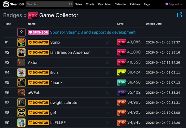 快科技4月25日消息,据SteamDB最新数据,Steam平台目前已有120名用户拥有超过2万款游戏,其中3人藏品突破4万款大关。