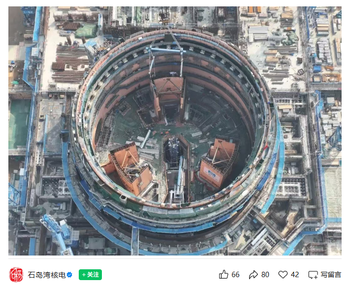 IT之家 4 月 25 日消息,中国华能宣布,我国北方地区首个开工建设的“华龙一号”核电项目 —— 华能石岛湾核电站扩建一期工程 1 号机组,今天在山东威海顺利完成内穹顶吊装,标志着项目从土建施工全面转入设备安装阶段。