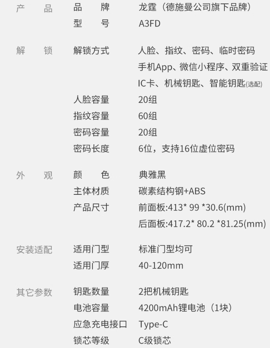 德施曼旗下:龙霆 3D 人脸识别智能门锁 A3FD 日常 748 元,今日国补后 PLUS 会员以旧换新实付 435 元。