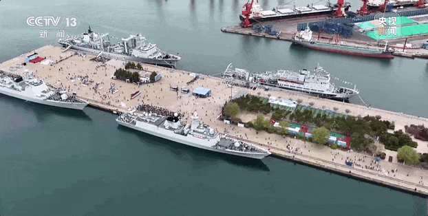 4月23日,人民海军迎来成立77周年纪念日。当天,山东青岛的青岛港与奥帆中心两座码头同时面向公众开放六艘舰艇,其中包括驱逐舰、护卫舰、远洋救生船和综合补给舰。在奥帆中心,市民和游客还可登船参观两艘海军现役主力舰: 052D型导弹驱逐舰乌鲁木齐舰和054A型导弹护卫舰潍坊舰。