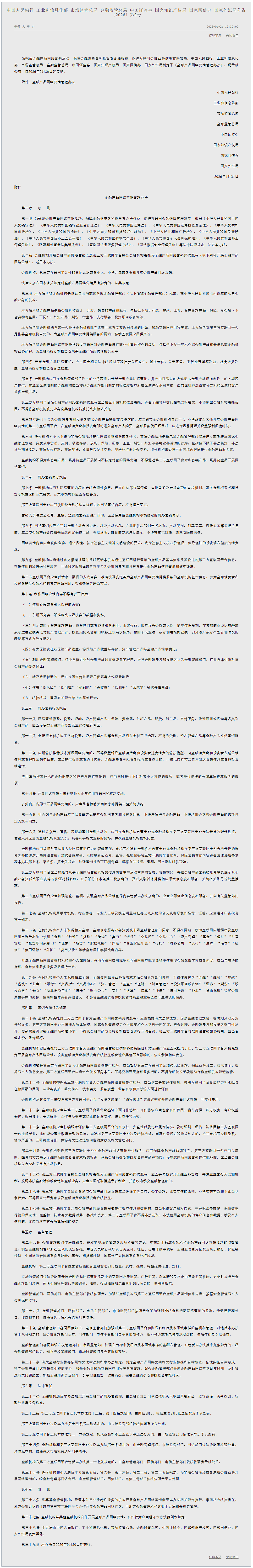 IT之家 4 月 26 日消息,中国人民银行等八部门 4 月 24 日联合印发《金融产品网络营销管理办法》,对金融机构开展金融产品网络营销,以及第三方互联网平台接受金融机构委托为金融产品网络营销提供服务的行为,进行全面规范。《办法》将于今年 9 月 30 日起实施