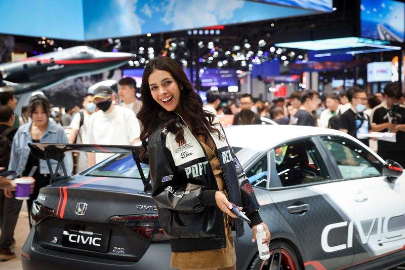 2026(第十九届)北京国际汽车展览会上,各大品牌展台邀请模特对全新车型进行时尚演绎,为展会注入活力,成为车展的特色亮点。
