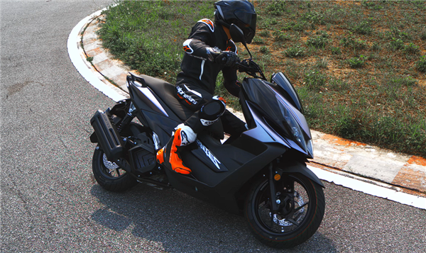 动力方面,150V搭载149cc单缸水冷四气门发动机,压缩比12.5:1,最大功率13.2kW (18马力),峰值扭矩15.5N·m,初段平顺,中后段动力攀升更快,尾速比150X更高,配13L大油箱,理论续航500公里。