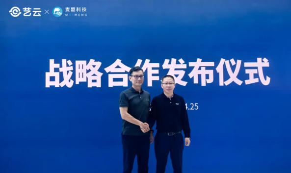 艺云科技总裁白峰与麦盟科技董事长陈勇代表双方签约,艺云科技副总裁、西部大区总经理刘兆雨等领导嘉宾共同见证签约仪式。