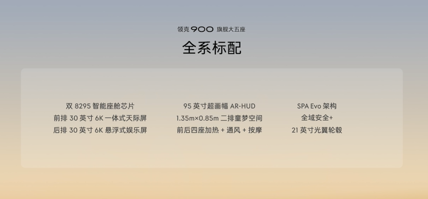 IT之家 4 月 27 日消息,在今天的发布会中,领克 900 大五座版本正式上市,该车号称是基于百亿级大型电混车专属架构 SPA Evo 打造的同级最大混动五座 SUV,定价为 29.98 万元起,上市限时置换价 25.48 万元起。
