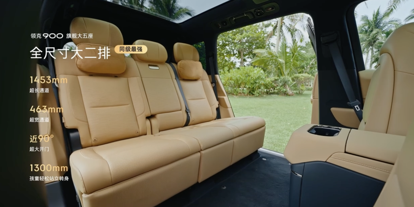 内饰方面,该车新增云绒粽配色,二排空间通道拓展至 1453mm x 463mm,车辆后备箱纵深提升至 1350mm,并配备同级独有二排儿童床,可拓展为 1.35m×0.85m 的专属休憩空间,满足约 9 岁儿童舒适躺卧。车内延续 30 英寸 6K 分辨率中控屏及二排 30 英寸翻转屏。