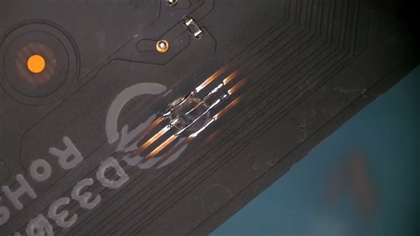 据维修技师介绍,用户自行更换散热垫之后显卡发生了故障,散热垫本身规格正确,但一颗螺丝被拧入过深,穿透PCB导致与VRM控制电路相关的走线短路。