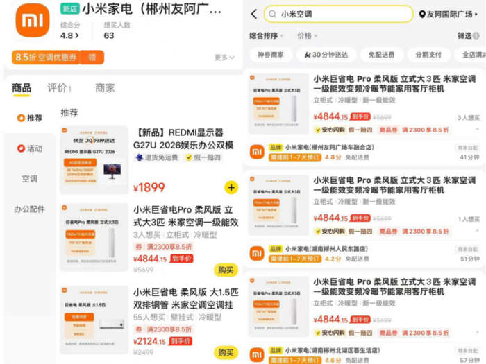 根据门店页面显示,区别于此前即时零售平台上已有的“小米之家”门店,“小米家电”专门售卖空调、显示器等大家电。这些门店显示由品牌官方开设,提供空调优惠券等权益。亿邦动力了解到,大家电的配送由门店专人完成,目前需要提前预约,后续将会进一步提升配送时效,并联合平台提供安装、维修等一体化服务。