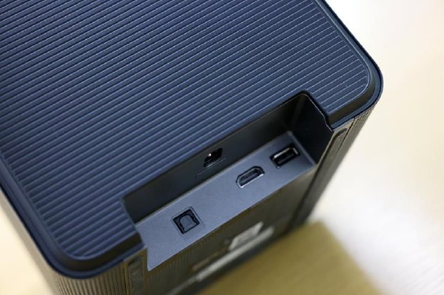 三星画境艺术音响7系的体积控制得很好,不管是放电视柜、书架,还是单独放在置物架上,都不会占用太多空间。所有的接口都藏在背面,包括 HDMI eARC、光纤、电源接口和一个用于固件升级的USB接口,正面看不到任何杂乱的走线,对于有点强迫症的人来说,这点真的太加分了。