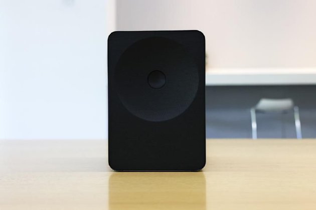 说实话,刚拆箱的时候,我甚至没第一反应过来这是个音响。它没有传统音响那种冷冰冰的工业棱角,整体是柔和的弧形线条,最醒目的就是正面中央那个标志性的圆点。