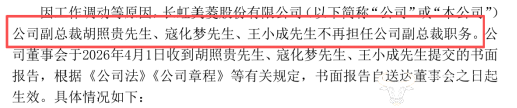 值得关注的是,除了首席合规官的聘任,长虹美菱在4月刚进行了一系列的高管调整。