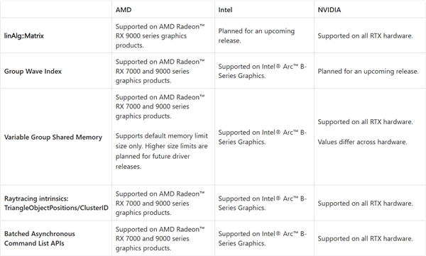 新版还引入了Group Wave Index(工作组波阵索引),可帮助着色器在不同显卡架构下,更安全地识别波阵工作组。