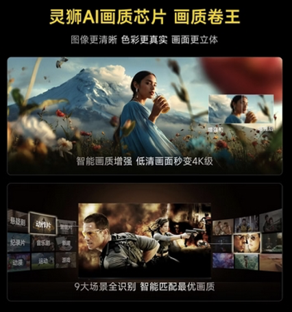 核心算力上,Vidda发现X 2027搭载同档最强灵狮AI画质芯片,拥有四大AI算法黑科技:AI 清晰度超解像技术能把2K内容修复至4K质感,AI Color色彩还原让肤色更自然,AI人眼景深追焦模拟人眼视觉特性,打造电影级空间感,AI智慧视觉还能智能识别19种观影场景,自动优化画质参数,不管是看电影、追动漫还是播纪录片,都能获得专属最佳视觉体验,画质直接超越多数万元旗舰电视。
