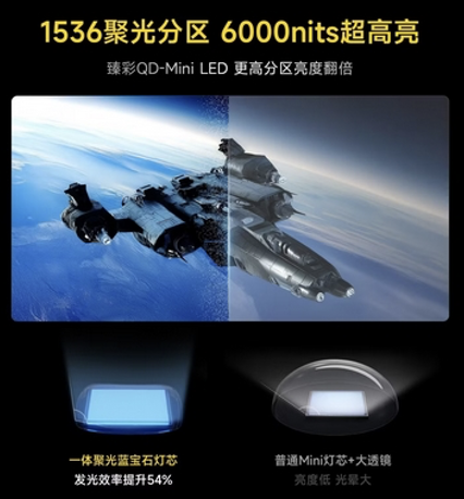 画质方面,Vidda发现X 2027直接达到旗舰水准,实现双倍高亮越级。我们平时看悬疑剧,昏暗画面里的细节、人物轮廓总是模糊,很容易错过关键内容。但Vidda发现X 2027搭载1536分区背光,峰值亮度飙升至6000nits,搭配自研一体聚光芯片与微距OD光学结构,发光效率提升54%,光晕减小92%,画面对比度和细节表现力大幅升级。就算是昏暗的暗场镜头,角落物件、人物微表情都能看得清清楚楚,追剧氛围感直接拉满。