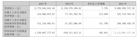 中顺洁柔发布的财报数据显示,公司2025年营业收入87.80亿元,同比增长7.72%,归母净利润为3.19亿元,相较于2024年同期的7718万元,大幅增长了312.80%,扭转了上年业绩下滑的态势,表现较为亮眼。