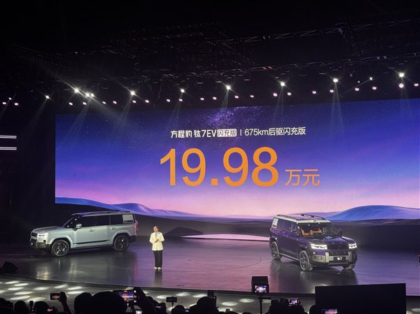 快科技4月29日消息,今晚,方程豹钛7 EV闪充版正式上市,共两个配置,售价19.98万元-20.98万元。