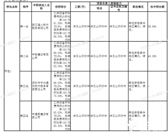 经过评审,四家中标候选人公示,按照排序: